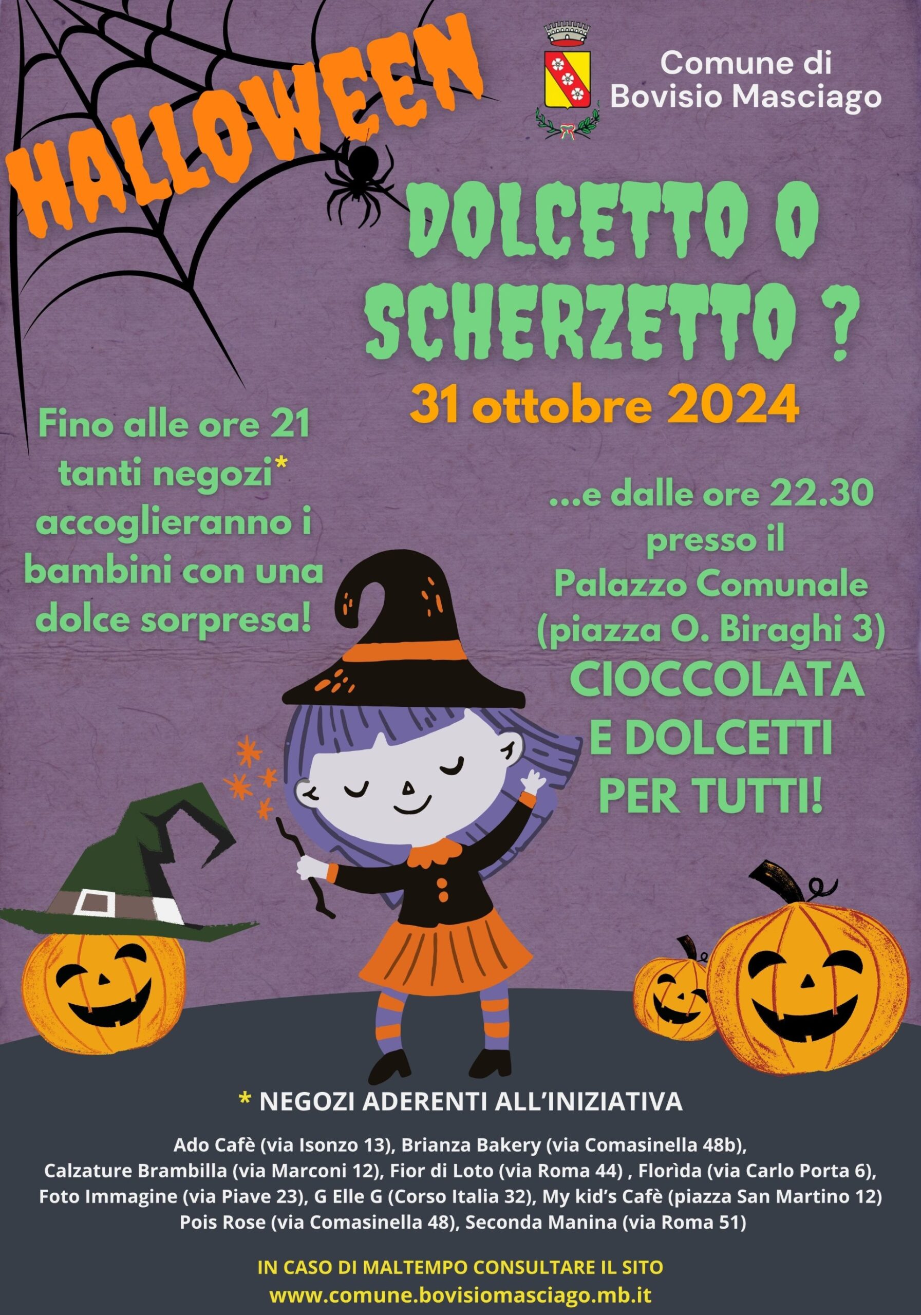 Dalle 22.30 presso il Palazzo Comunale (Piazza O. Biraghi 3) ci saranno cioccolata calda e dolcetti per tutti