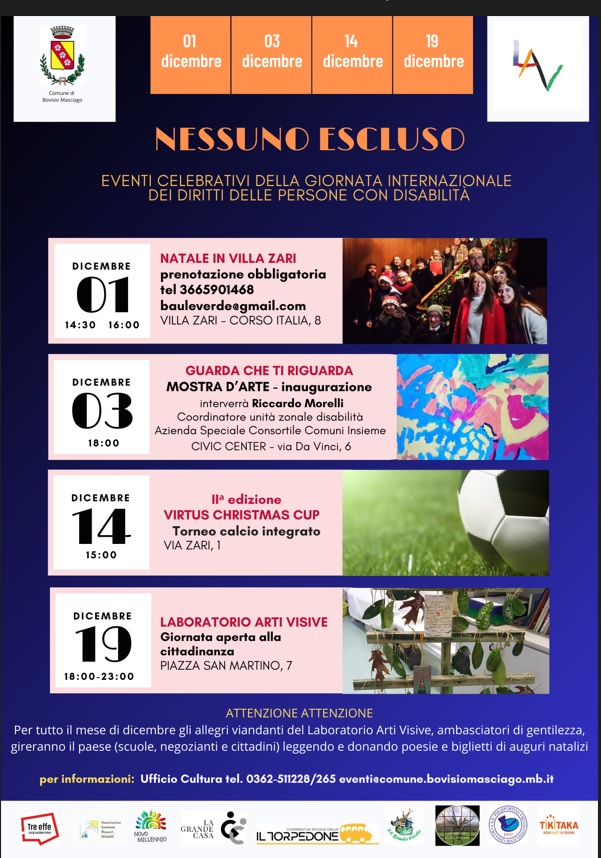 In allegato la locandina con tutti gli appuntamenti organizzati nell’ambito del progetto “Nessuno Escluso” – eventi celebrativi della Giornata Internazionale dei diritti delle persone con disabilità