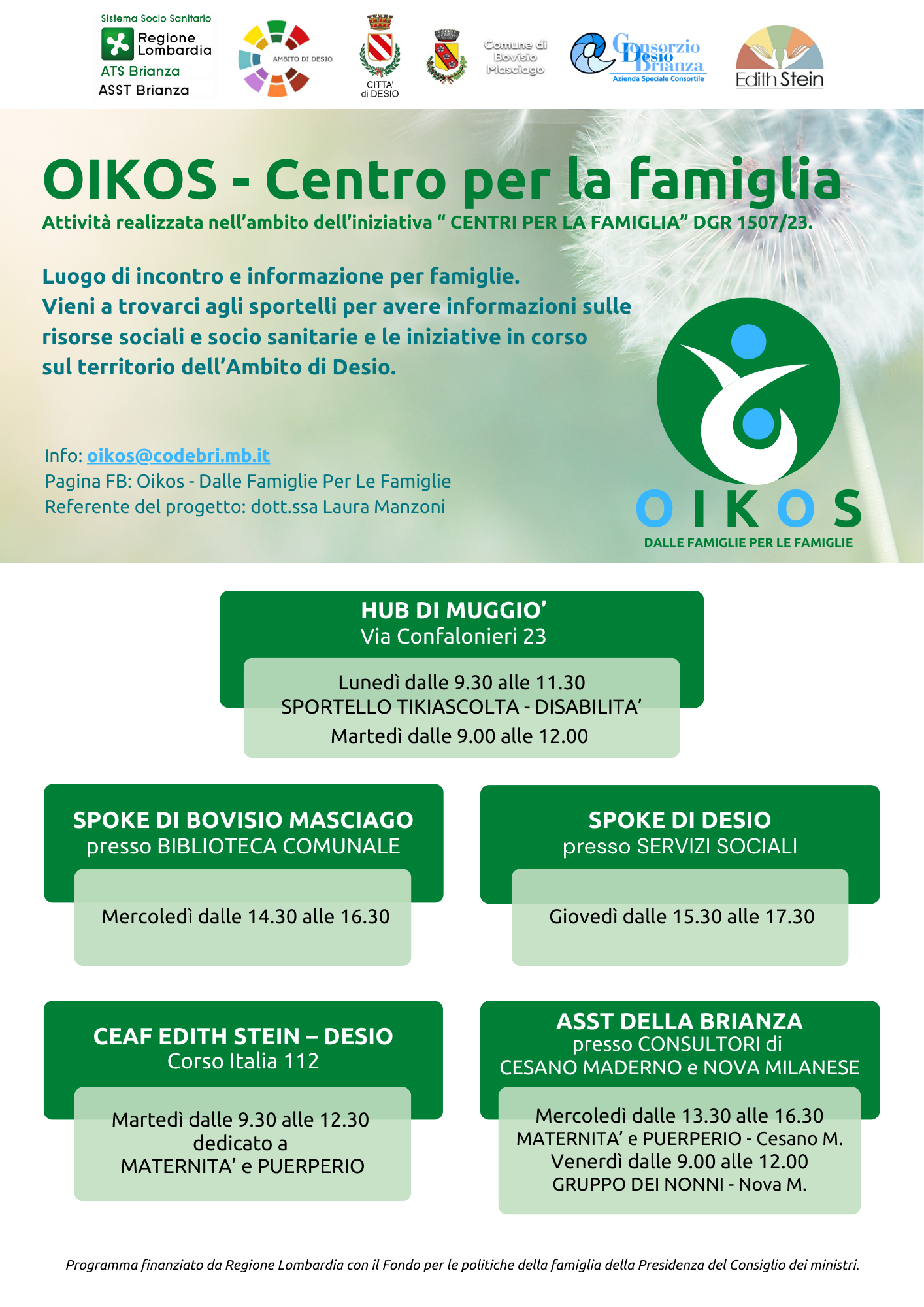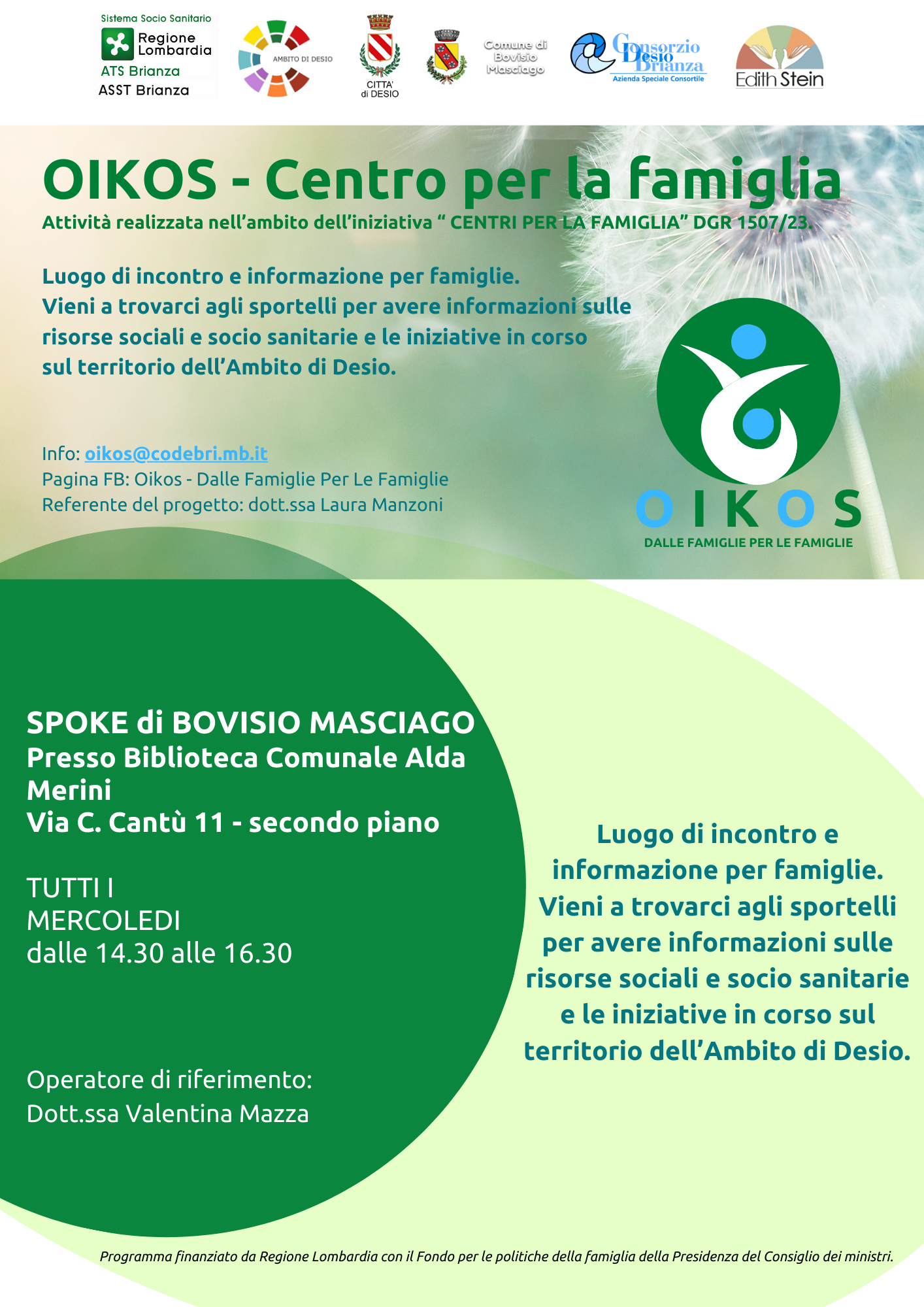 In allegato il volantino relativo allo sportello di Bovisio Masciago e quello con tutti gli sportelli OIKOS presenti sul territorio.
