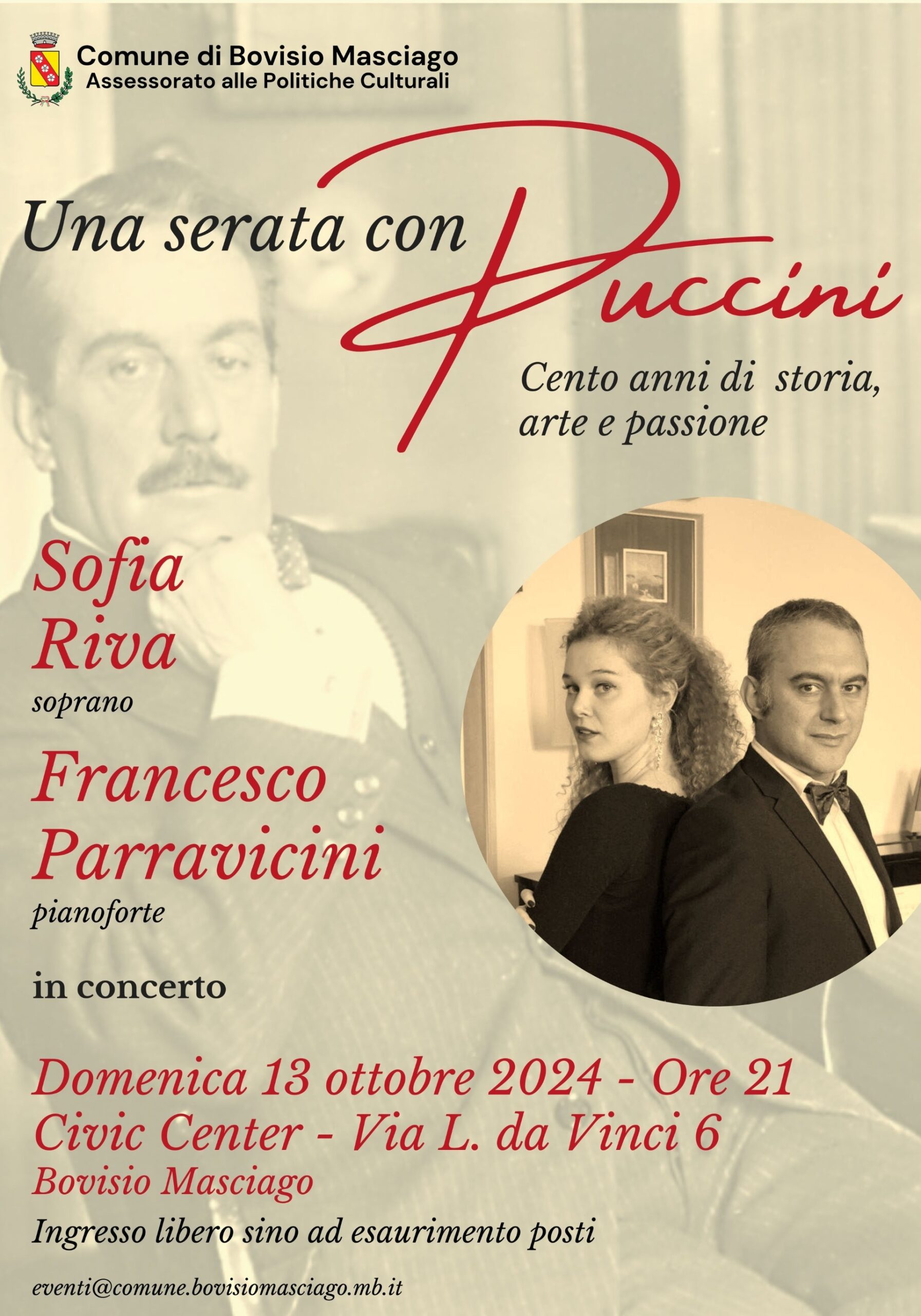 L’Amministrazione Comunale organizza una serata musicale per celebrare il Centenario della morte di Giacomo Puccini.